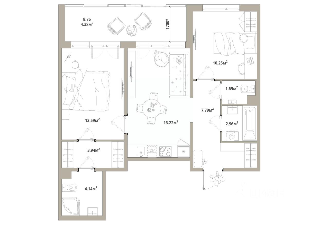 Продаётся 2-комнатная квартира 232, общей площадью 64.96 кв.м., на 6 этаже. Дом комфорт-класса, 12 этажей, в окружении леса и малоэтажной застройки. Проект с умным домом.