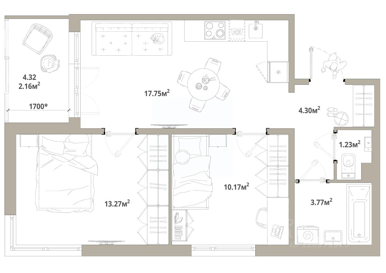 Продаётся 2-комнатная квартира 219, общей площадью 52.65 кв.м., на 5 этаже. Дом комфорт-класса, 12 этажей, в окружении леса и малоэтажной застройки. Проект с умным домом.