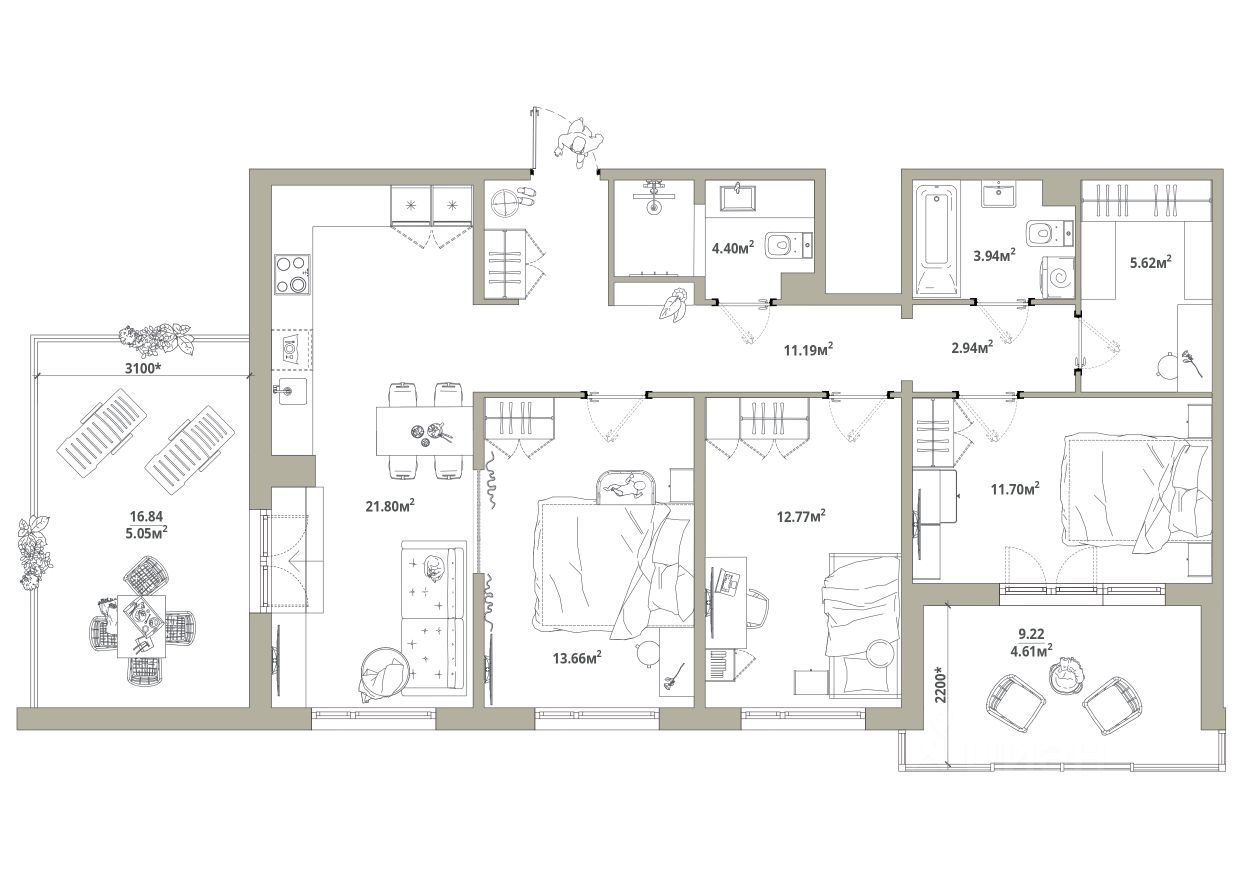 Продаётся 3-комнатная квартира 073, общей площадью 97.68 кв.м., на 11 этаже. Дом комфорт-класса, 12 этажей, в окружении леса и малоэтажной застройки. Проект с умным домом.