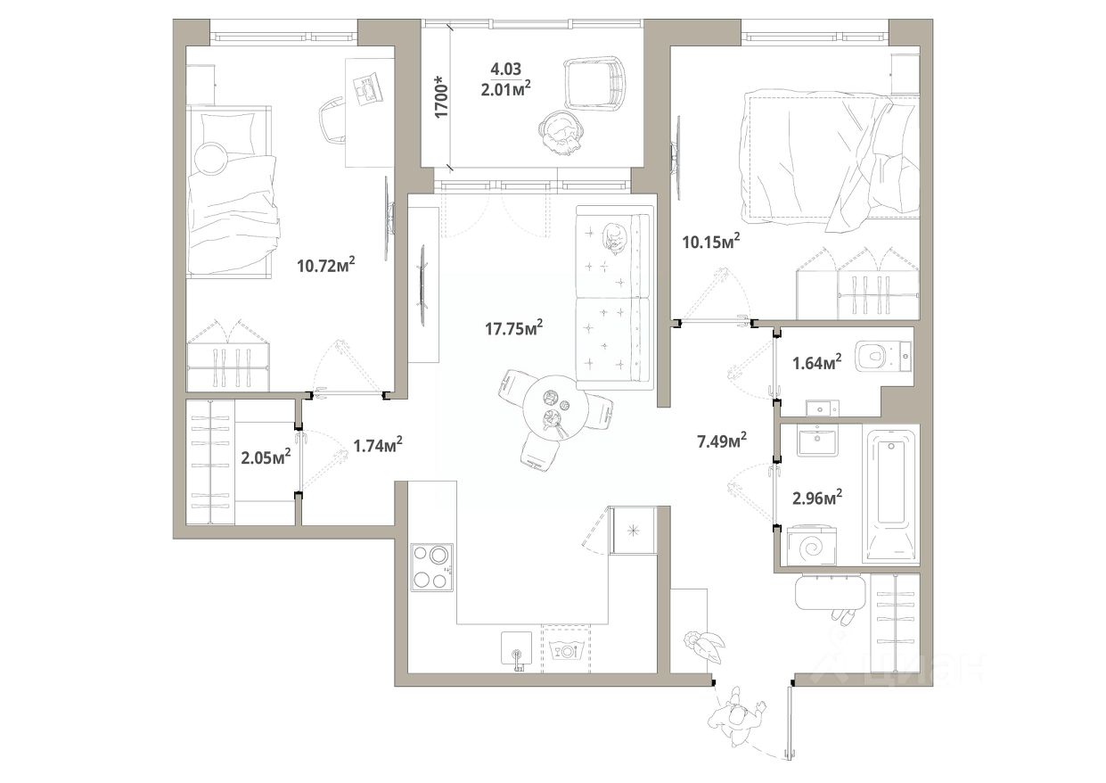 Продаётся 2-комнатная квартира 137, общей площадью 56.51 кв.м., на 8 этаже. Дом комфорт-класса, 12 этажей, в окружении леса и малоэтажной застройки. Проект с умным домом.