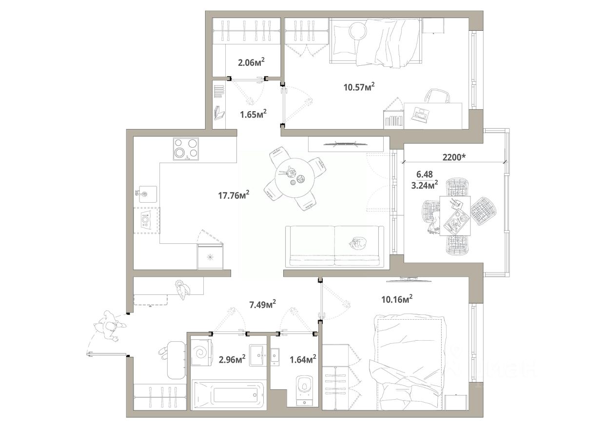 Продаётся 2-комнатная квартира 262, общей площадью 57.53 кв.м., на 10 этаже. Дом комфорт-класса, 12 этажей, в окружении леса и малоэтажной застройки. Проект с умным домом.
