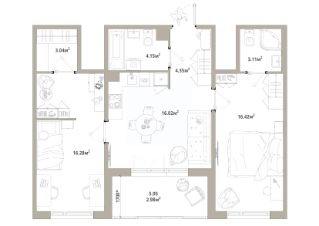 Продаётся 2-комнатная квартира 114, общей площадью 66.35 кв.м., на 5 этаже. Дом комфорт-класса, 12 этажей, в окружении леса и малоэтажной застройки. Проект с умным домом.