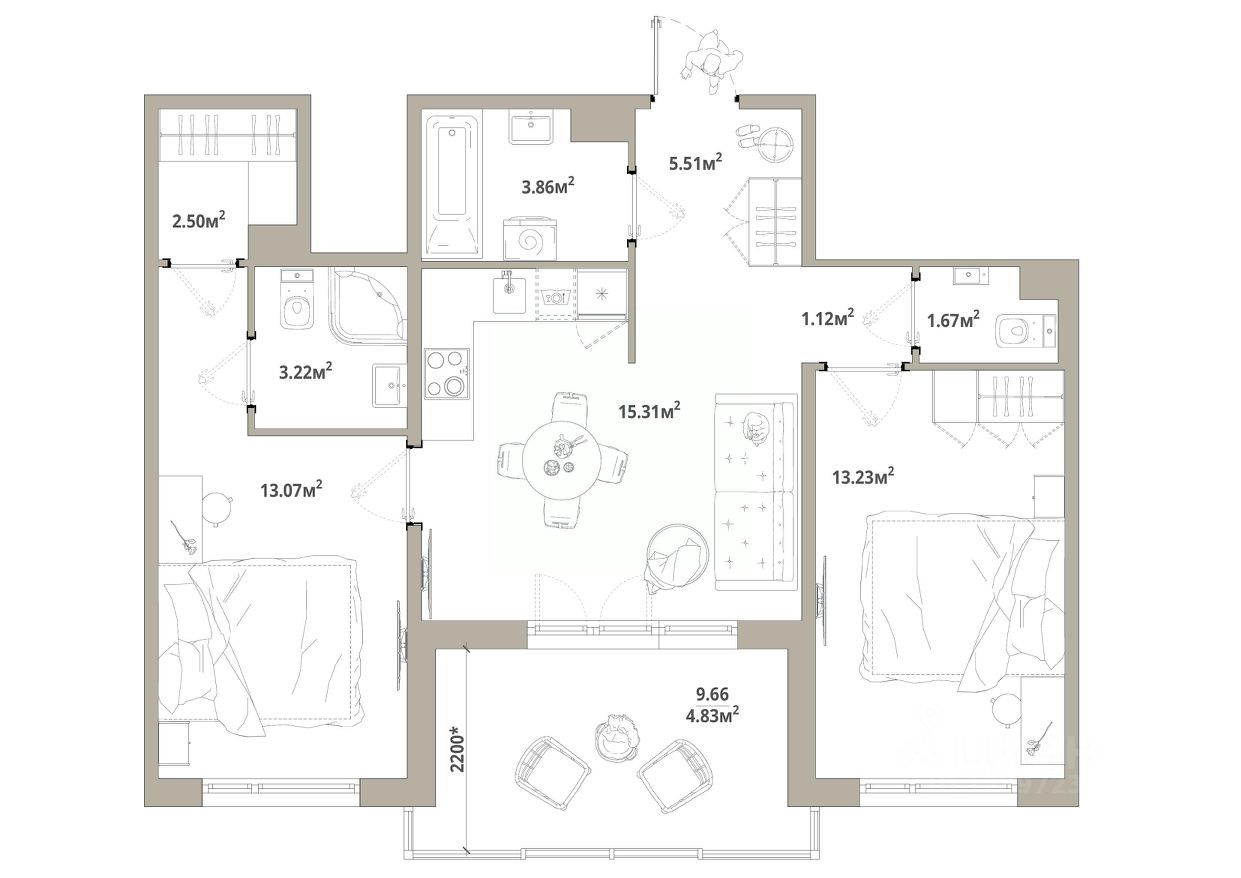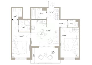 Продаётся 2-комнатная квартира 066, общей площадью 64.32 кв.м., на 10 этаже. Дом комфорт-класса, 12 этажей, в окружении леса и малоэтажной застройки. Проект с умным домом.