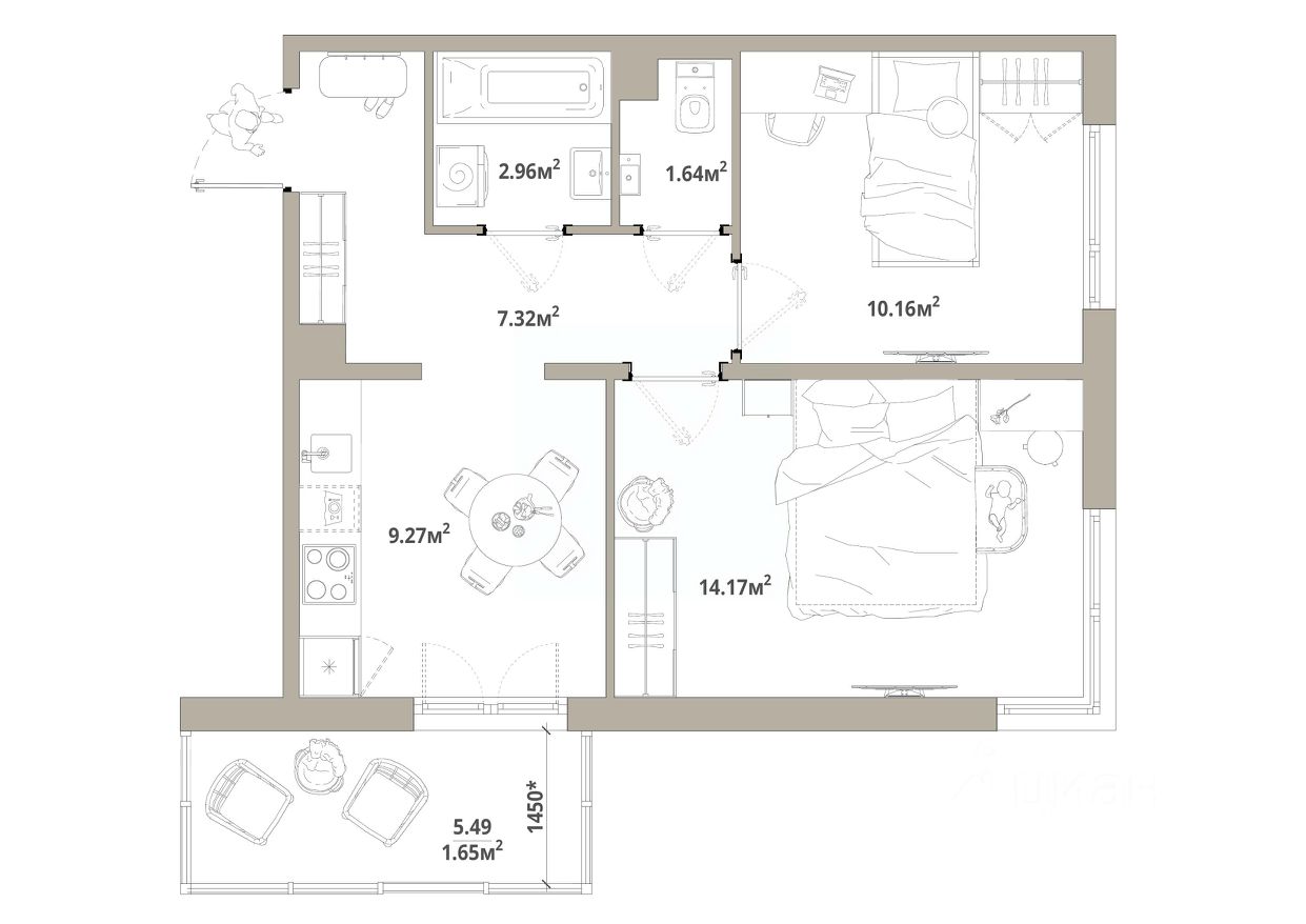 Продаётся 2-комнатная квартира 263, общей площадью 47.17 кв.м., на 10 этаже. Дом комфорт-класса, 12 этажей, в окружении леса и малоэтажной застройки. Проект с умным домом.