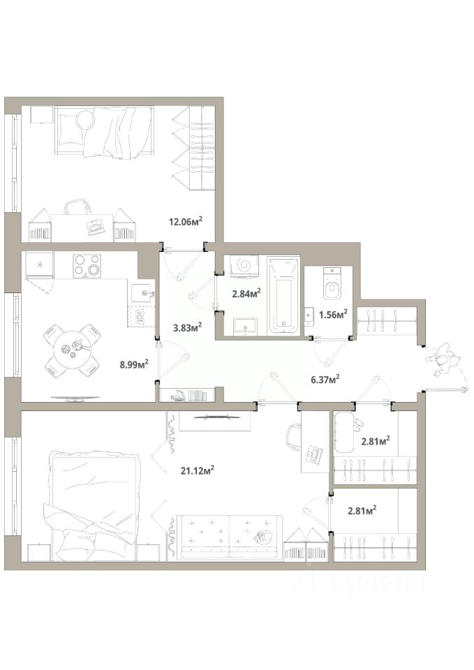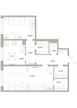 Продаётся 2-комнатная квартира 003, общей площадью 62.39 кв.м., на 1 этаже. Дом комфорт-класса, 12 этажей, в окружении леса и малоэтажной застройки. Проект с умным домом.