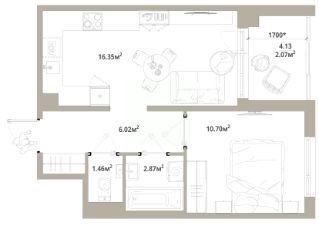 Продаётся 1-комнатная квартира 033, общей площадью 39.47 кв.м., на 5 этаже. Дом комфорт-класса, 12 этажей, в окружении леса и малоэтажной застройки. Проект с умным домом.