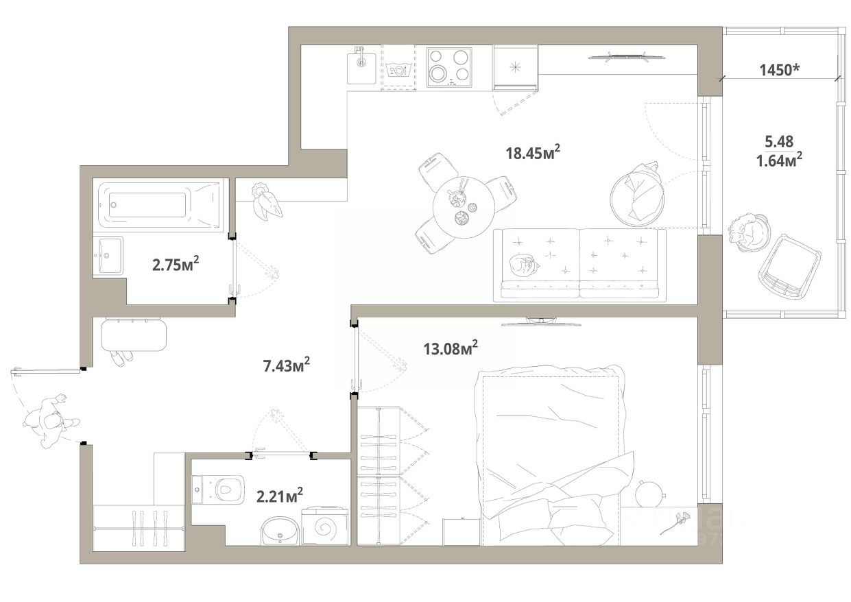 Продаётся 1-комнатная квартира 107, общей площадью 45.56 кв.м., на 4 этаже. Дом комфорт-класса, 12 этажей, в окружении леса и малоэтажной застройки. Проект с умным домом.