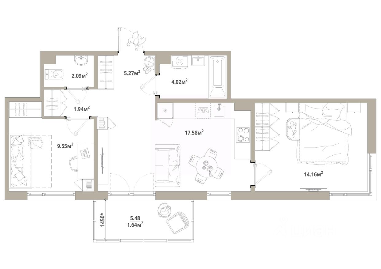 Продаётся 2-комнатная квартира 091, общей площадью 56.25 кв.м., на 2 этаже. Дом комфорт-класса, 12 этажей, в окружении леса и малоэтажной застройки. Проект с умным домом.