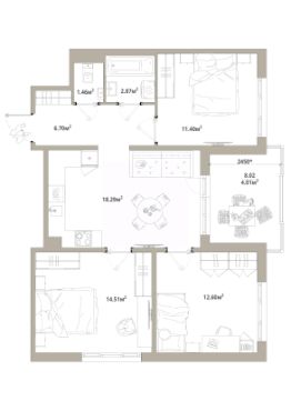 Продаётся 3-комнатная квартира 074, общей площадью 71.84 кв.м., на 10 этаже. Дом комфорт-класса, 12 этажей, в окружении леса и малоэтажной застройки. Проект с умным домом.