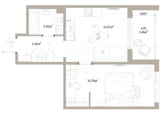 Продаётся 1-комнатная квартира 043, общей площадью 43.56 кв.м., на 7 этаже. Дом комфорт-класса, 12 этажей, в окружении леса и малоэтажной застройки. Проект с умным домом.