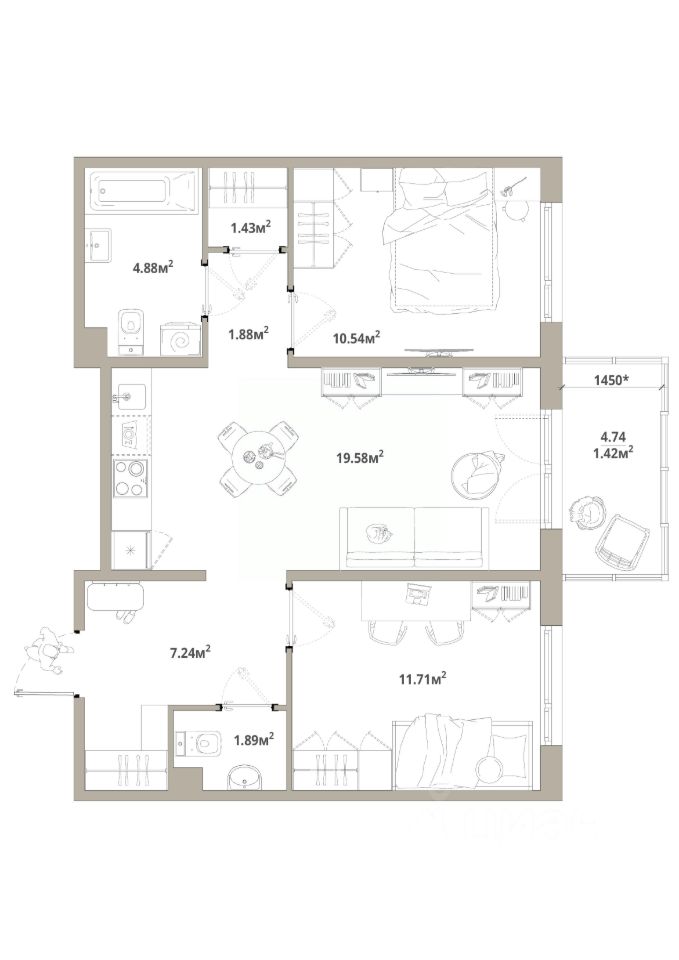Продаётся 2-комнатная квартира 168, общей площадью 60.57 кв.м., на 10 этаже. Дом комфорт-класса, 12 этажей, в окружении леса и малоэтажной застройки. Проект с умным домом.
