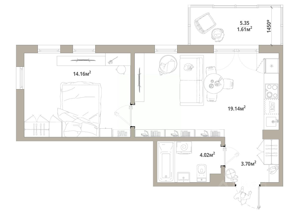 Продаётся 1-комнатная квартира 090, общей площадью 42.63 кв.м., на 10 этаже. Дом комфорт-класса, 12 этажей, в окружении леса и малоэтажной застройки. Проект с умным домом.