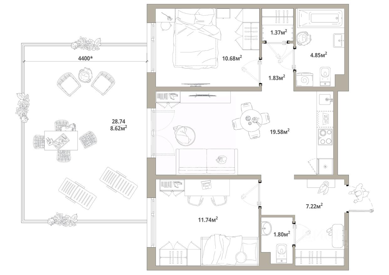 Продаётся 2-комнатная квартира 116, общей площадью 67.69 кв.м., на 2 этаже. Дом комфорт-класса, 12 этажей, в окружении леса и малоэтажной застройки. Проект с умным домом.
