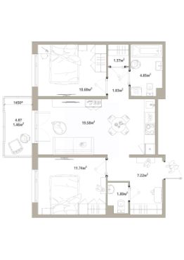 Продаётся 2-комнатная квартира 123, общей площадью 60.53 кв.м., на 3 этаже. Дом комфорт-класса, 12 этажей, в окружении леса и малоэтажной застройки. Проект с умным домом.