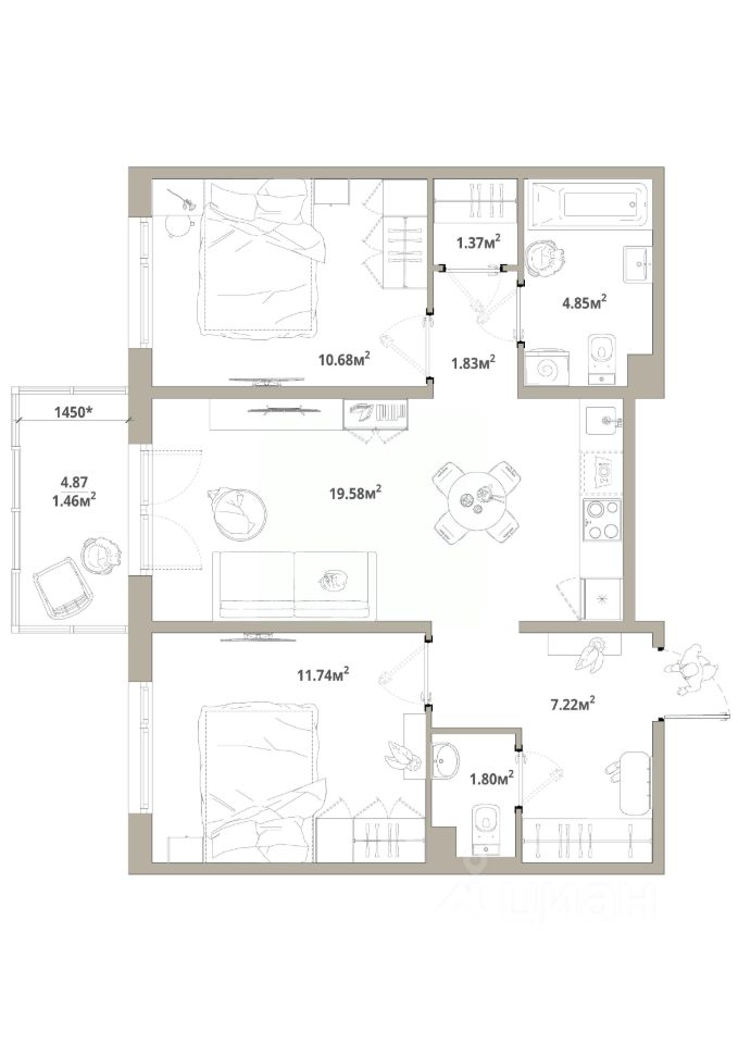 Продаётся 2-комнатная квартира 137, общей площадью 60.53 кв.м., на 5 этаже. Дом комфорт-класса, 12 этажей, в окружении леса и малоэтажной застройки. Проект с умным домом.