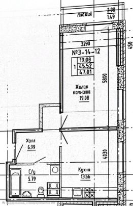 Метраж : 44,9 м.кв. + балкон 3 м.кв.
