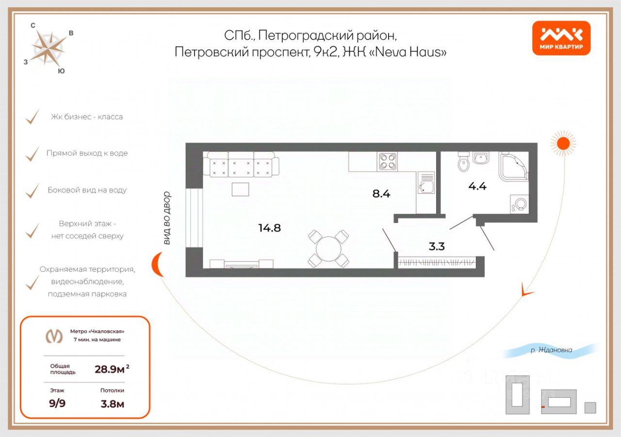 Локация обеспечивает быстрый доступ ко всем районам города, и главным историческим доминантам. Близко расположены выезд на ЗСД (до 10 минут на машине), Мост Бетанкура (до 5 минут на машине), до ближайших станций метро - Крестовский остров, Чкаловская, Петроградская, прогулочным шагом от 15 до 20/25 минут.