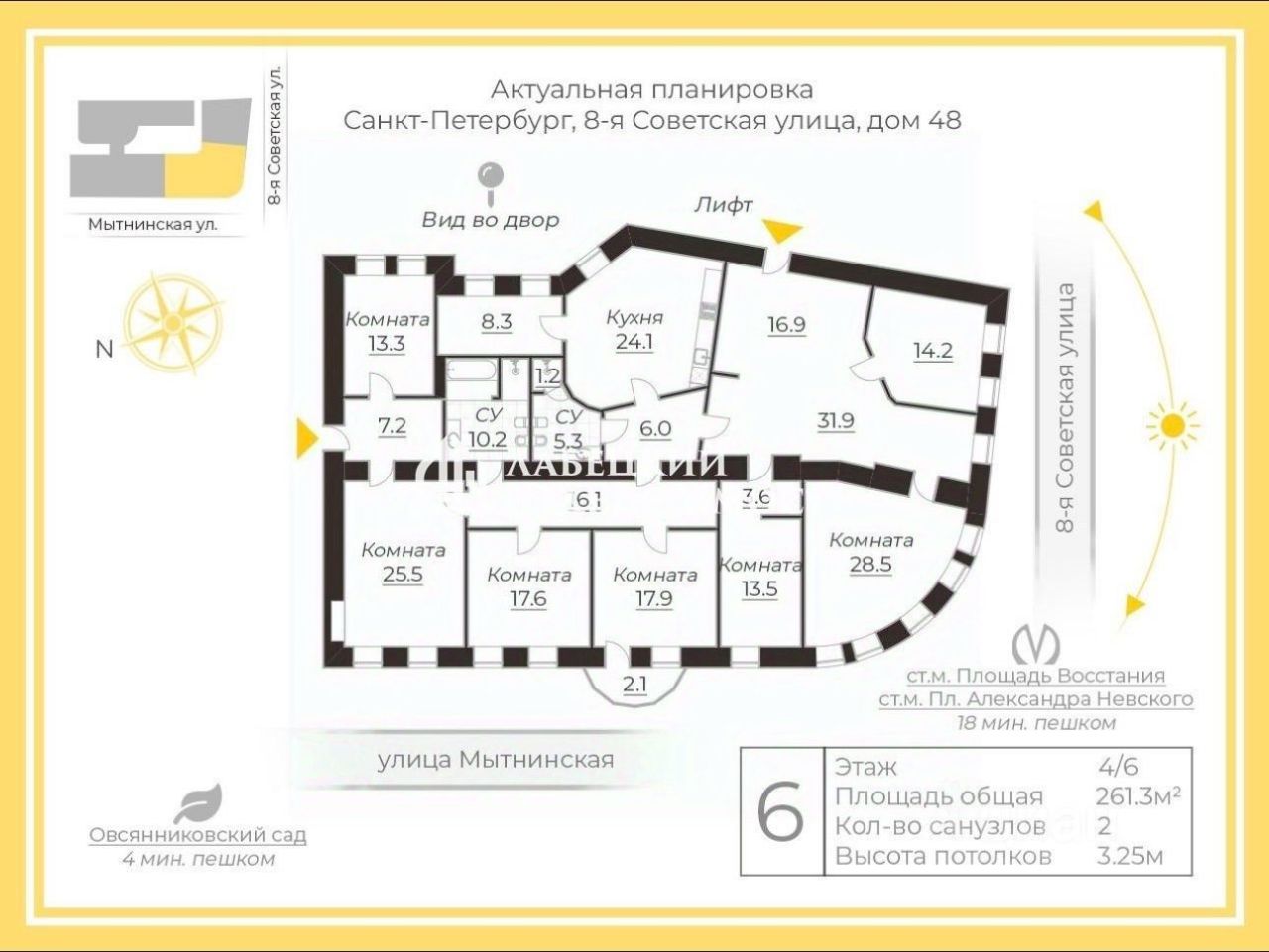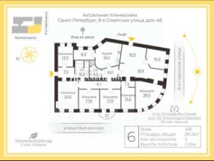 • Квартира располагается в угловой части дома, благодаря чему имеет интересную планировку и вид на Мытнинскую и 8-ю Советсткую улицу.