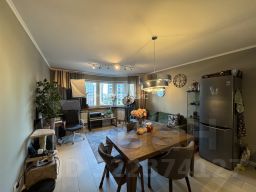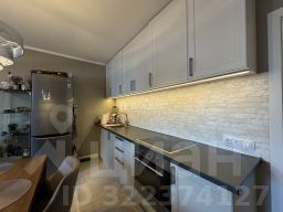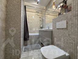 Огромная кухня-гостиная с полуэркером, Отдельная гардеробная/постирочная, Кухонный гарнитур шириной 3 метра с верхними шкафами в потолок (фасады Soft Touch) оснащена немецкой мойкой Oulin. Заказной фартук из испанской плитки подсвечен светодиодной лентой. Обеденная зона с дубовым шпонированным столом и дизайнерским стульями освещается светильником, в гостиной зоне располагается приятный тканевый диван с возможностью разложиться в двойное спальное место, рядом расположился кофейный столик из керамогранита сделанный на заказ. Ванная комната с инсталляцией, безободковым унитазом, огромным зеркалом, ванной Jacob Delafon. Удобная раковина с просторными выдвижными ящиками. Много испанской мозаики. Теплый пол Electrolux.