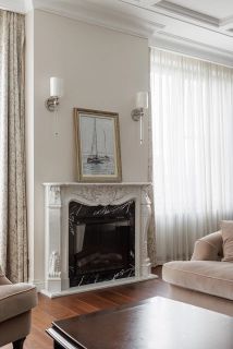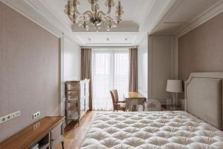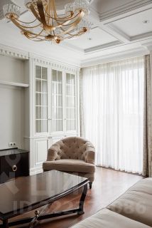 Изысканный дизайн-проект квартиры выполнен по индивидуальному проекту, в стиле Американская классика с элементами ар-деко, с применением уникальных технологий отделки и высокого качества исполнения работ (высокая себестоимость).