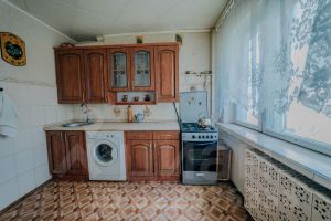 Кухонный гарнитур, холодильник, стиральная машина остается новым владельцам.