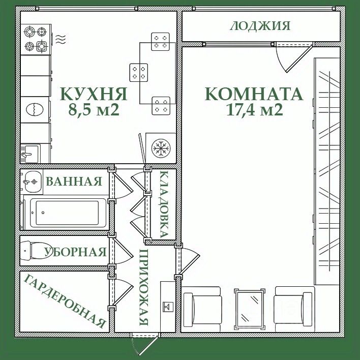 Солнечная, светлая квартира 37 м2 с гардеробной комнатой