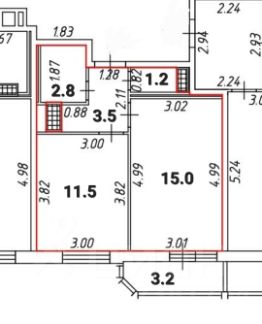 Квартира обладает функциональной планировкой: жилая зона составляет 15 м2, а кухня - 11.5 м2. Дополнительное удобство создает раздельный санузел. В прихожей расположена ниша под гардероб, также имеется застекленный балкон, который можно обустроить под место для отдыха. Квартира удалена от лифтовой зоны.