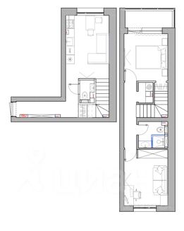 Вход в квартиру на первом этаже, на котором расположена просторная кухня- гостиная, гостевой санузел и гардероб. На втором этаже расположены две спальни, золотой санузел с душевой кабиной и вместительная гардеробная.