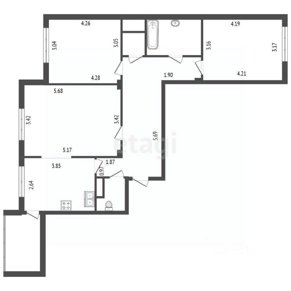 Просторная трехкомнатная квартира в кирпичном доме жилого комплекса "КАПИТАЛ" от застройщика "Строительный трест" предлагает выгодное сочетание комфортной планировки и экономичной эксплуатации.