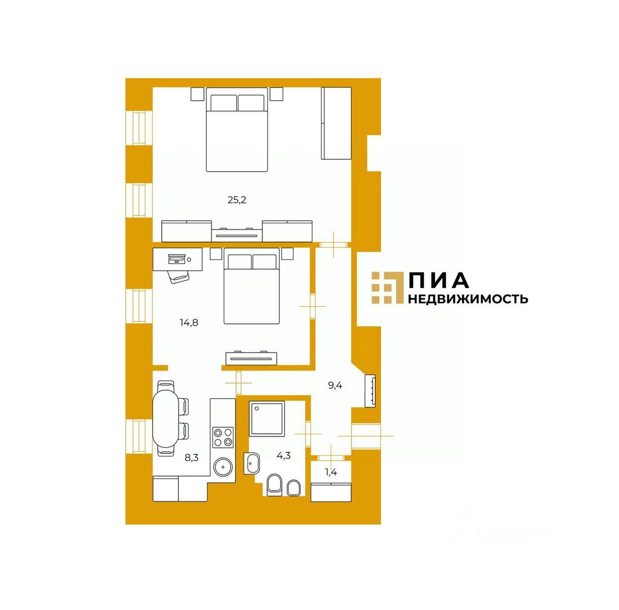 Арт. 16013698. В продаже двухкомнатная квартира в престижном Петроградском районе Санкт-Петербурга.