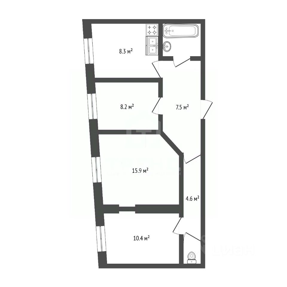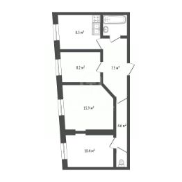 Удобная планировка: общая площадь 56,9 кв.м, просторная жилая площадь 34,5 кв.м, три изолированные комнаты, кухня 8,3 кв.м.