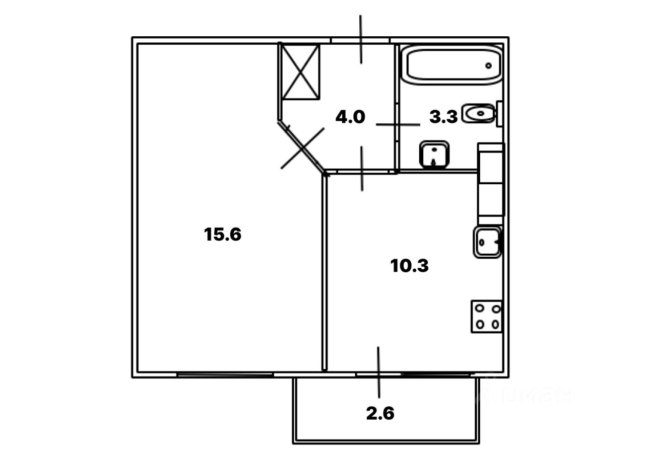 Просторная кухня-гостиная 10.3 кв.м. с выходом на остеклённый балкон 2.6 кв.м., который служить дополнительным пространством для хранения или отдыха. Жилая комната 15.6 кв.м. подойдёт для зонирования на спальную и рабочую зону. Прихожая 4.0 кв.м. с местом под шкаф. Совмещённый санузел.