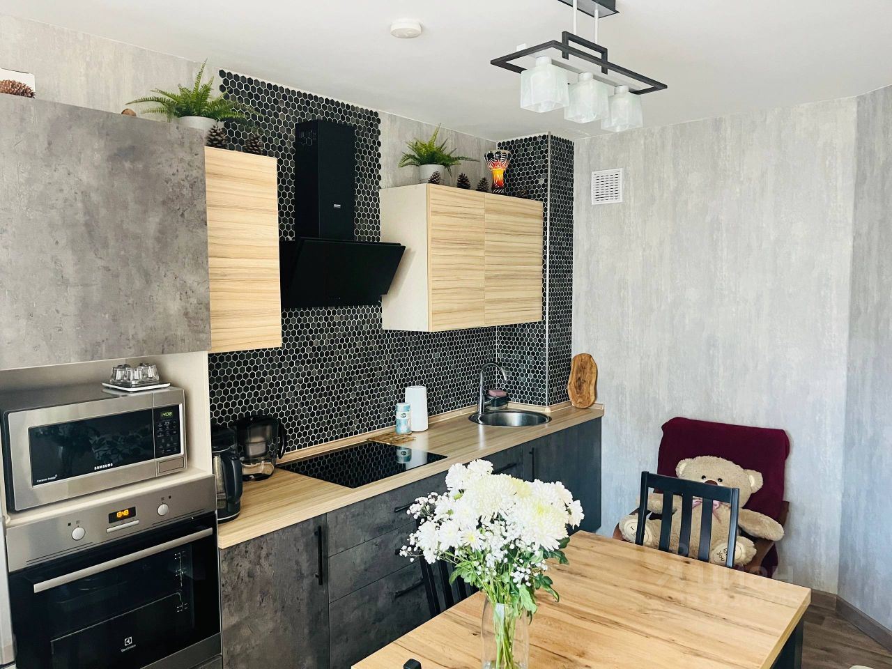 + Полностью готова к проживанию: есть вся необходимая мебель и техника. ++ Качественный кухонный гарнитур фирмы Мария с доводчиками Blum со встроенной техникой: духовой шкаф, индукционная панель, посудомоечная машина фирмы Electrolux, двухкамерный большой холодильник Hotpoint, вытяжка, микроволновая печь.