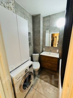 + Совмещенный санузел включает в себя ванну французского производителя, унитаз, электрический полотенцесушитель, раковину и тумбу под ней. Также в санузле установлена стиральная машина LG, над которой имеется шкаф для хранения. Отделка санузла выполнена из керамогранита высокого качества.