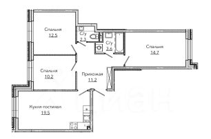 Общая площадь - 74,2м²