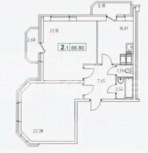 Просторная планировка: общая площадь квартиры составляет 64,9 кв. м, из которых 43,48 кв. м — жилая площадь. Две отдельные комнаты и кухня площадью 10,01 кв. м обеспечивают комфортное проживание.
