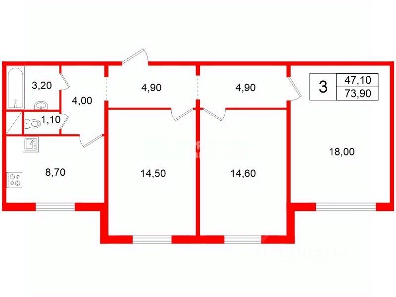 73,9 м²