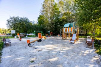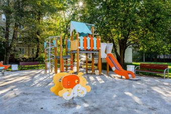 • Окна: Выходят на детскую площадку, в тихий двор без машин.