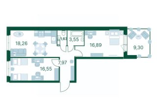 Предлагается к продаже 2 комнатная квартира 67,65 кв.м. с террасой в 3 доме.