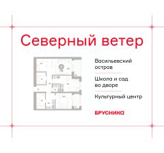 2-комн. квартира с предчистовой отделкой в ЖК "Северный ветер" на 10 этаже. Общая площадь: 77.93 кв.м., жилая: 24.1 кв.м., площадь просторной кухни-столовой: 21.8 кв.м. Комнаты изолированные, все окна выходят на одну сторону. В квартире две лоджии, два совмещенных санузла. Высота потолков 3.1 м.
