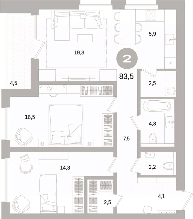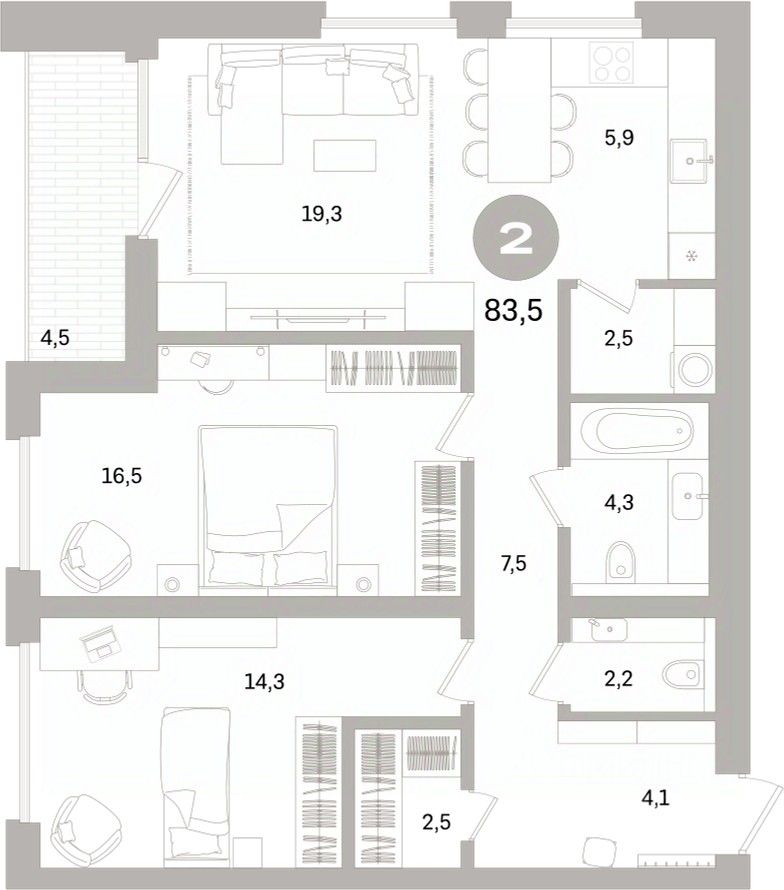 Продается 2-комн. квартира от застройщика с предчистовой отделкой в ЖК "Северный ветер" на 7 этаже. Общая площадь: 83.51 кв.м., жилая: 30.8 кв.м., площадь просторной кухни-столовой: 25.2 кв.м. Квартира угловая, идеально подойдет любителям тишины и панорамных видов. В квартире одна лоджия, один совмещенный и один раздельный санузел. Высота потолков 3.1 м.