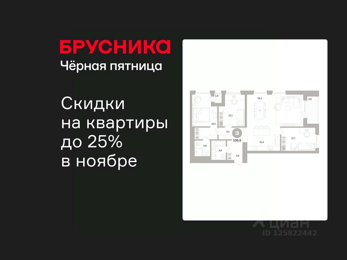 Просторная 3-комн. квартира с предчистовой отделкой в ЖК "Северный ветер" на 7 этаже. Общая площадь: 106.58 кв.м., жилая: 41 кв.м., площадь просторной кухни-столовой: 42.5 кв.м. Угловая квартира, окна oбecпeчивaют paвнoмepнoe ocвeщeниe в тeчeниe дня. В квартире две лоджии, два совмещенных санузла. Высота потолков 3.1 м.