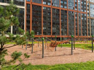 Современный дом 2024 года постройки. Закрытый двор от автомобилей. Есть парковка для автомобилей. Парадная сквозная с возможностью выйти и на парковку, и во двор. Зелень и детские современные площадки.