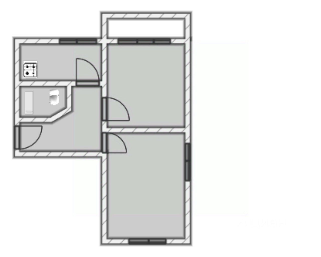 Квартира общей площадью 43,3кв.м., жилая 11,3+18,1кв.м. в доме 1975 года постройки.