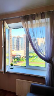 - Окна во двор на школу — светло и спокойно, тишина, без шума от дороги.