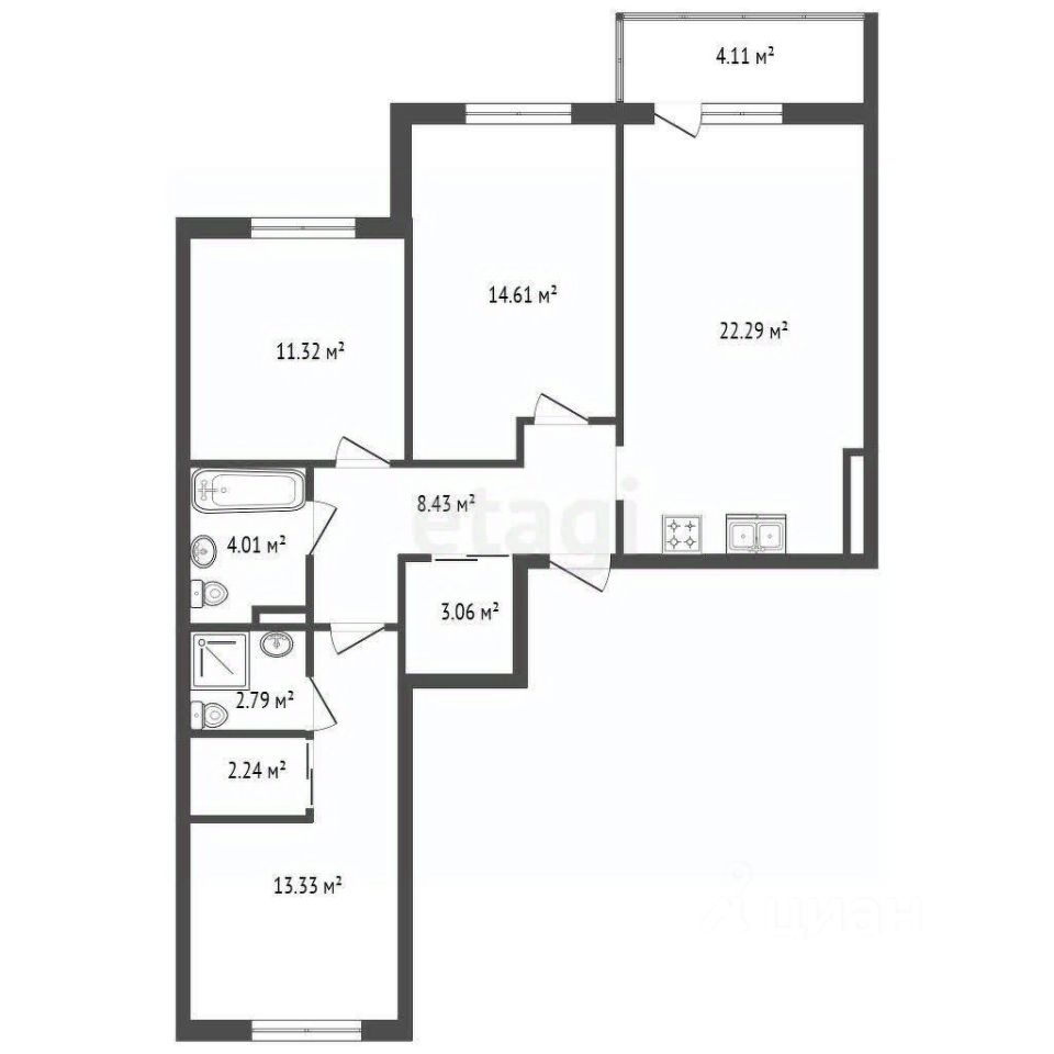 Просторная кухня-гостиная объединена в единое светлое пространство площадью 28 кв. м, что создает комфортную зону для семейного отдыха и приема гостей. Две изолированные спальни (14 и 12 кв. м) обеспечивают приватность для всех членов семьи. Дополнительное удобство — два санузла, один из которых совмещенный. Лоджия 4 кв. м с панорамным остеклением увеличивает полезное пространство и наполняет квартиру естественным светом.