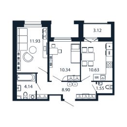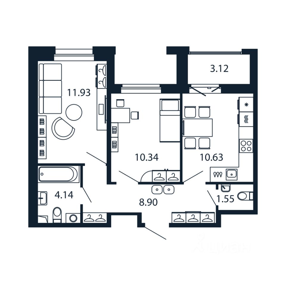 Прямая продажа от застройщика! Готовая Двухкомнатная квартира 46.5 кв.м с кухней 10.63 кв.м с чистовой отделкой на 12 этаже в сданном ЖК "Полис Новоселье".
