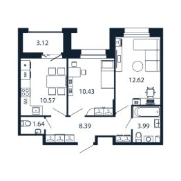 Прямая продажа от застройщика! Готовая Двухкомнатная квартира 47.3 кв.м с кухней 10.57 кв.м с предчистовой отделкой на 12 этаже в сданном ЖК "Полис Новоселье".