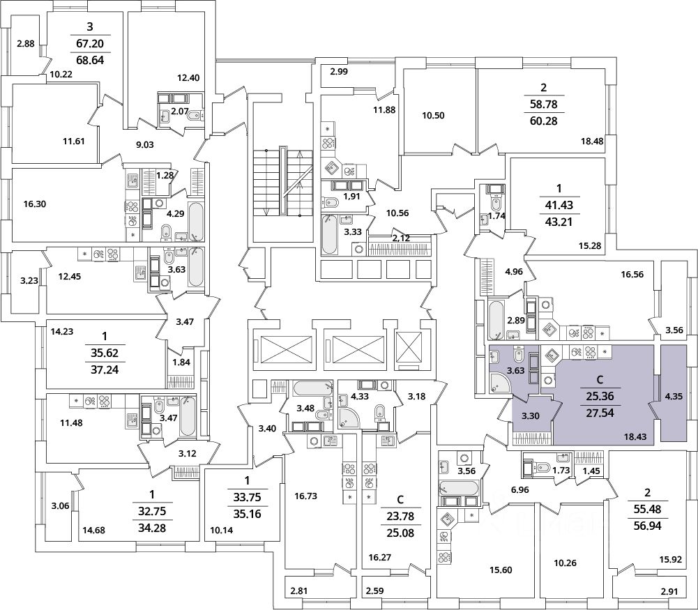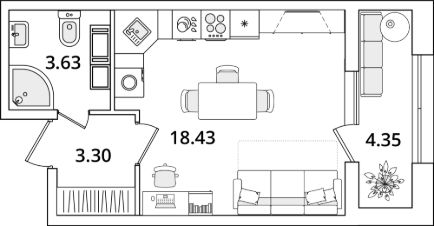 Квартира находится в 22 этажном доме, в Корпус 3 на 12 этаже. Общая площадь квартиры 27,50 кв.м.