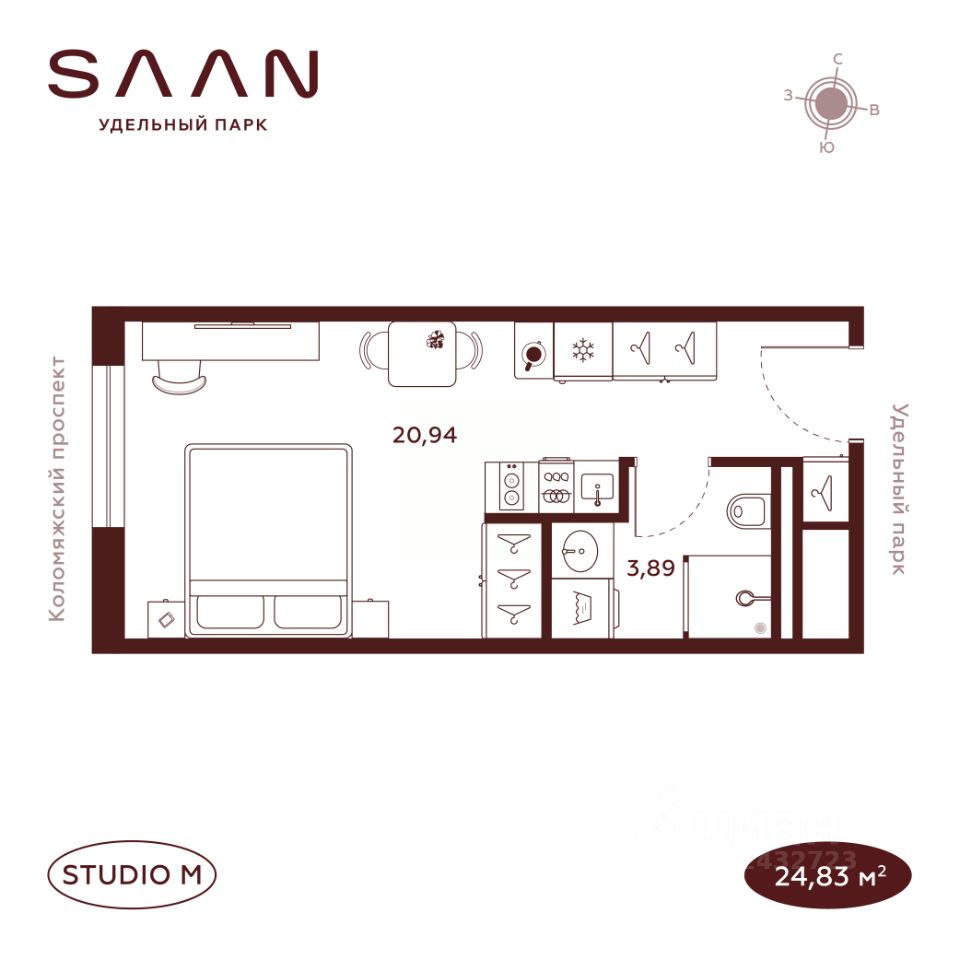 Общая площадь24,83 м²